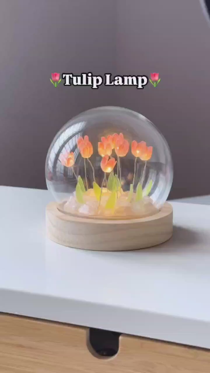 Design: This lamp features 10 LED tulip-shaped flowers enclosed within a glass dome, creating a charming and romantic ambiance. The pink tulips symbolize eternal love, making it a meaningful addition to any space.