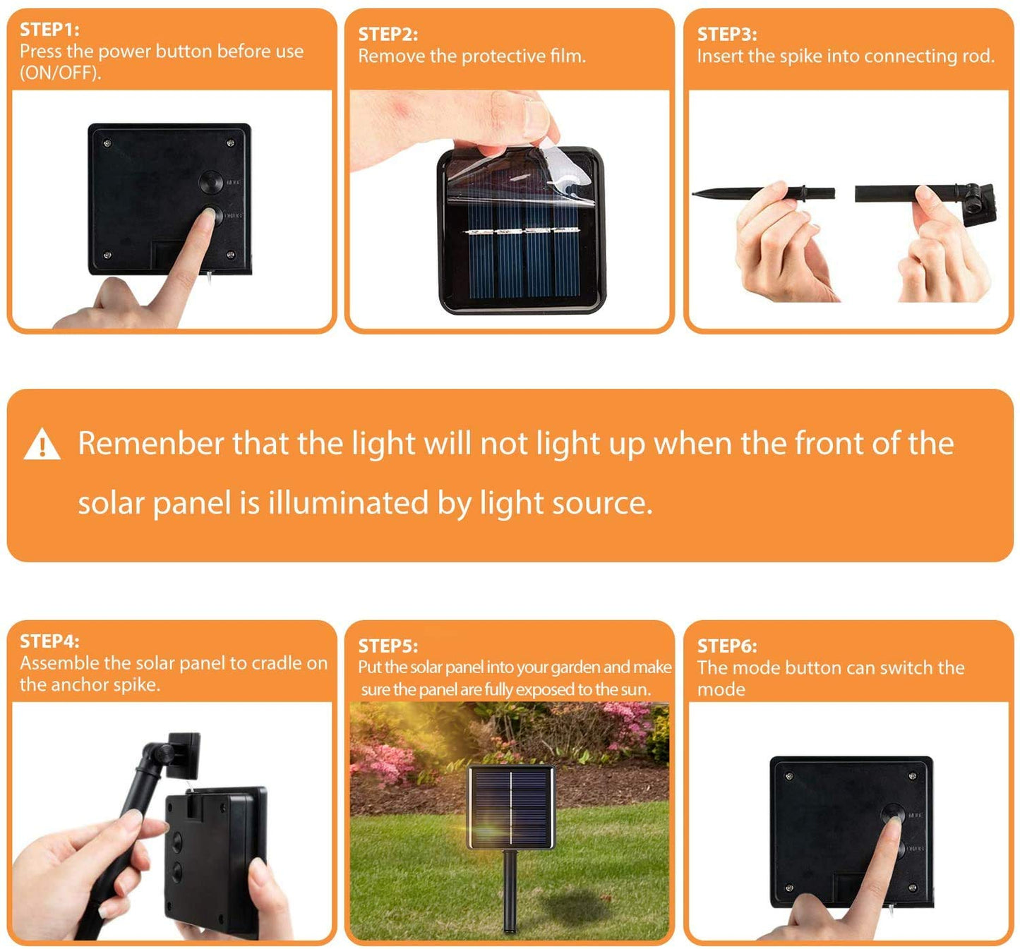 Solar Powered: Completely solar-operated with a high-efficiency panel that charges during the day and automatically lights up at dusk.