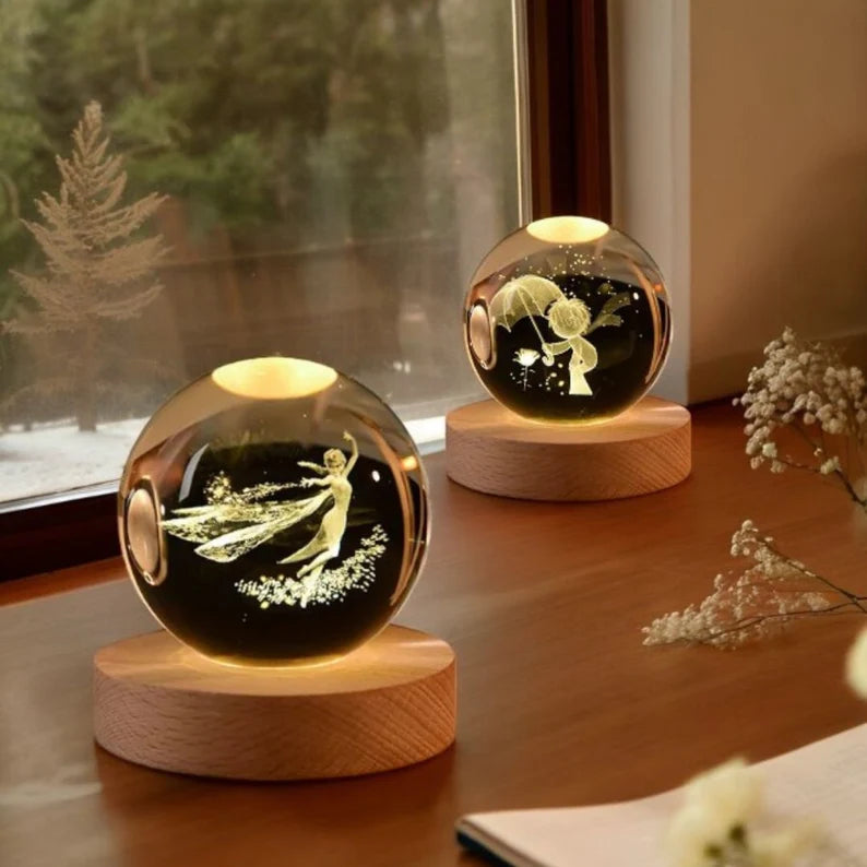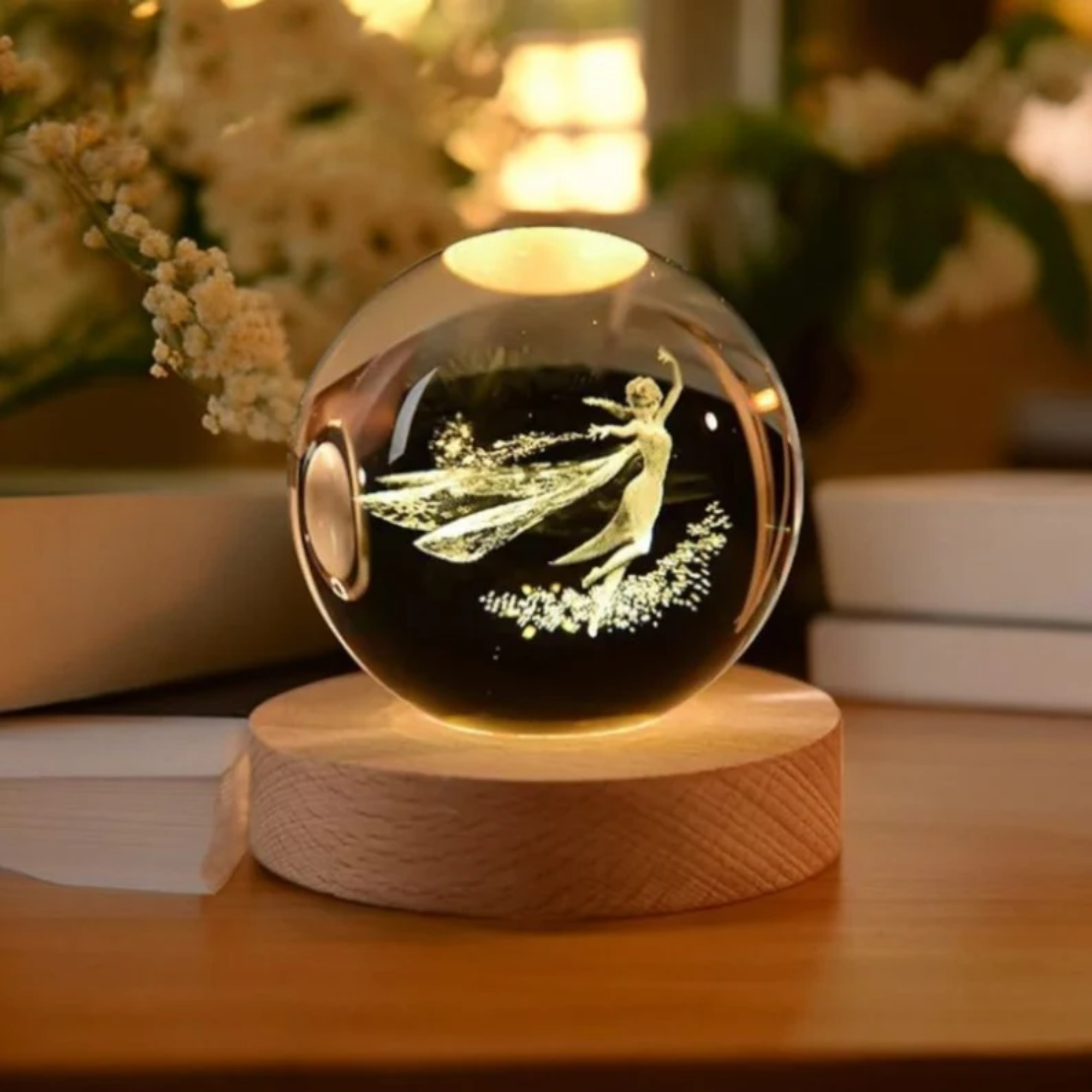 3D Galaxy Crystal Ball Night Light With Wooden Base ( Princess Elsa )