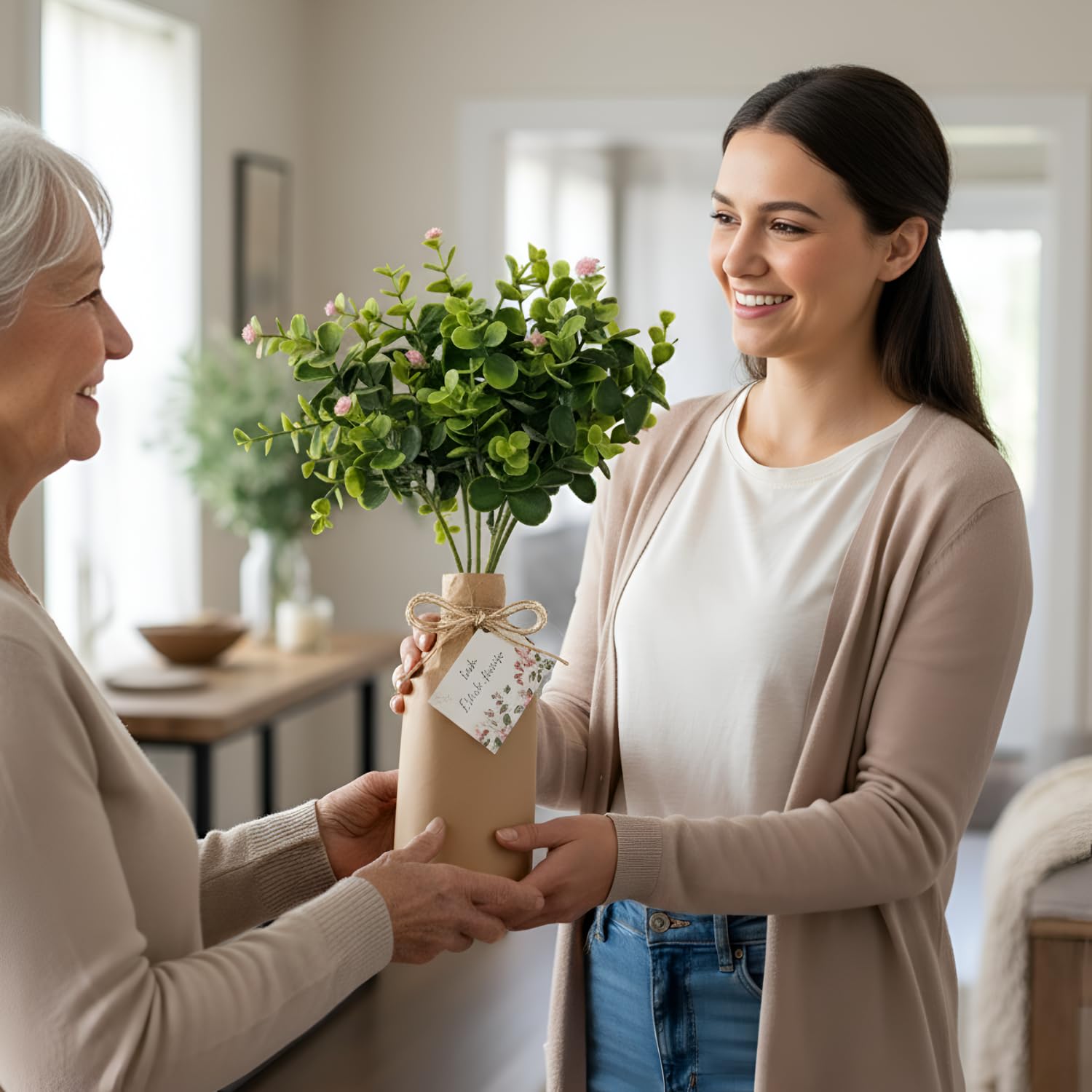Beautiful Combination – A mix of realistic eucalyptus leaves with soft Baby Breath pink flowers for a fresh, elegant look.