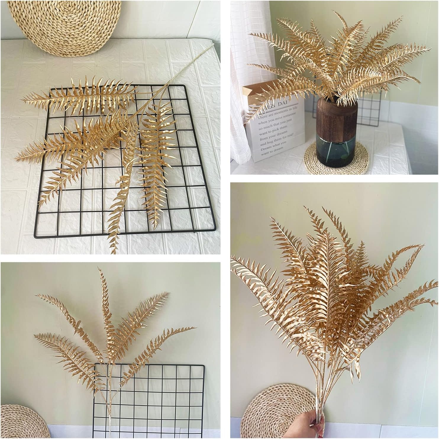 Premium Design: Each bunch features meticulously crafted Boston fern-style leaves coated with a shimmering golden finish, giving a rich, festive, and modern appeal.