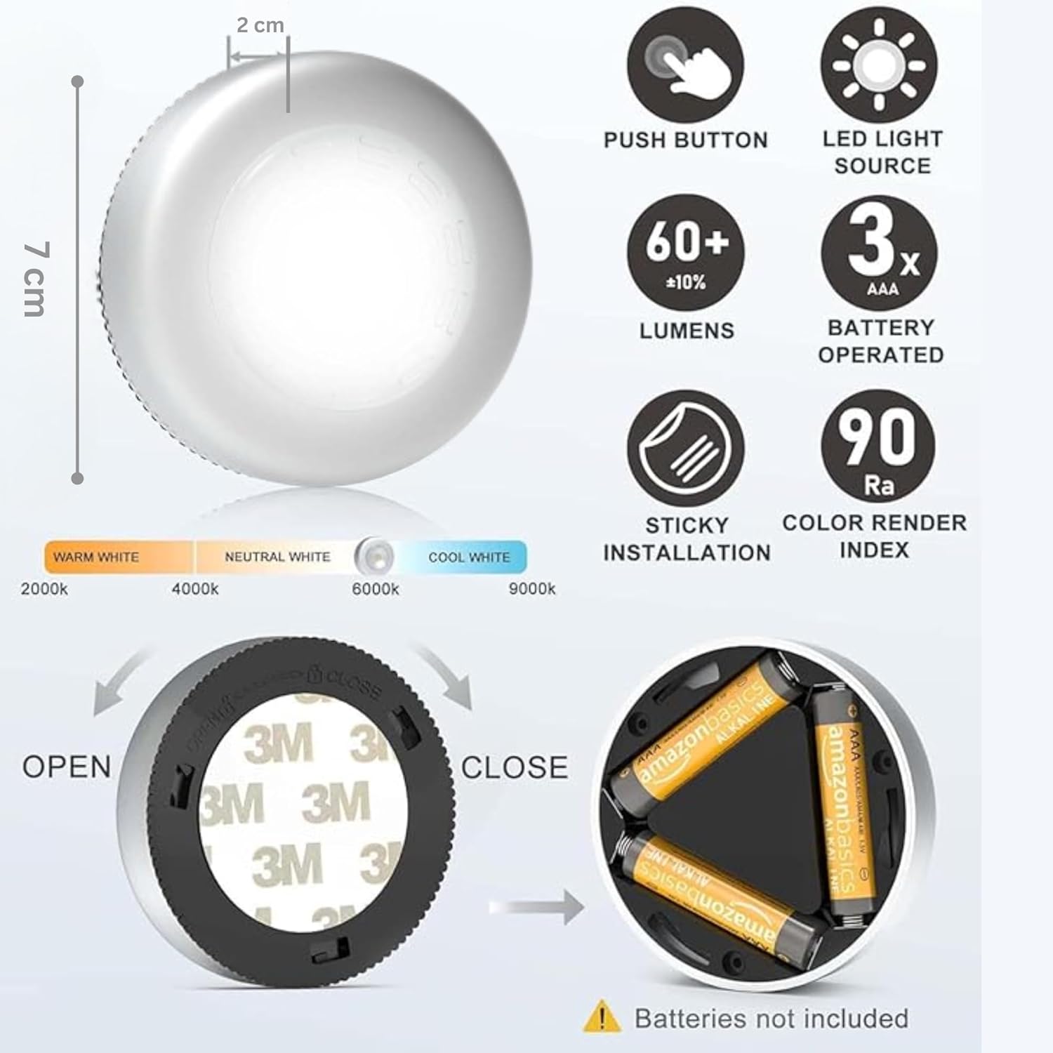 Bright LED Illumination: Each tap light features bright, energy-efficient LED bulbs that provide clear, white light—perfect for late-night navigation or task lighting.
