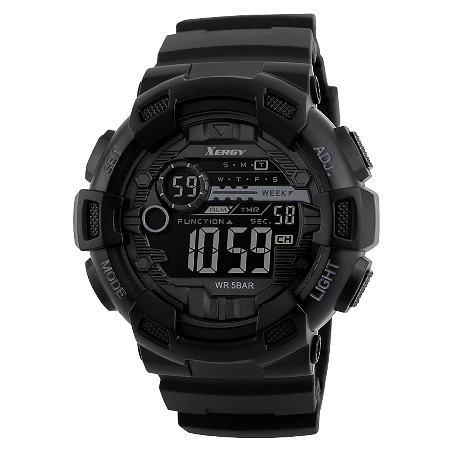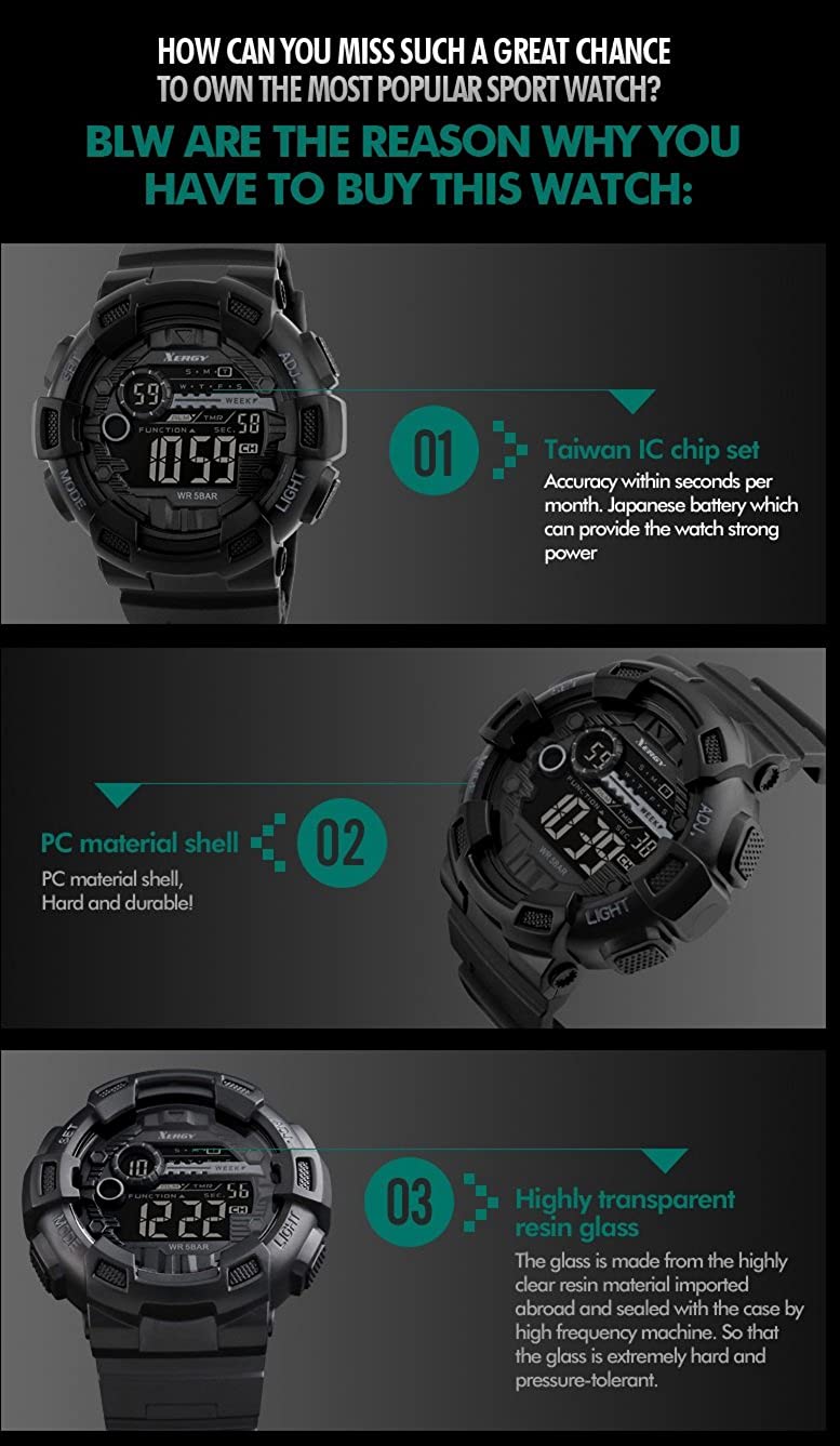 Xergy presents a perfect collection of "Xergy Luxury Sports"- Dual Time chronic alarm, date, week. A super luxury range of sports watches for the achiever in You !! This one is a masculine all-weather timepiece from the "Luxury Sports" collection. with precise time-keeping. It's macho style exemplifies sheer luxury and raw passion. This legendary timepiece is meant for the ambitious only. You are guaranteed superb precision with an effortless charismatic charm.