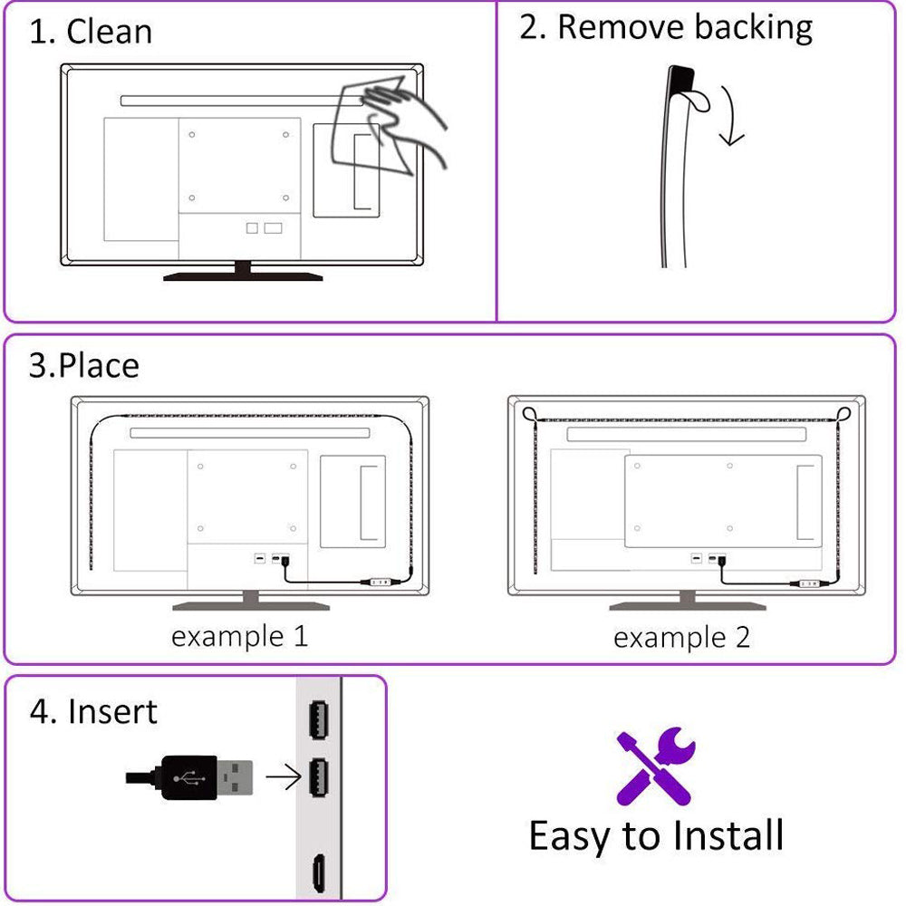 Easy Installation: Simply peel and stick the self-adhesive LED strip on the back of your TV or monitor. It's easy to set up with no tools required.
