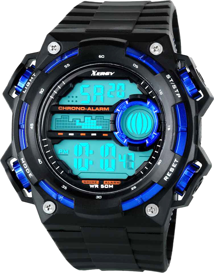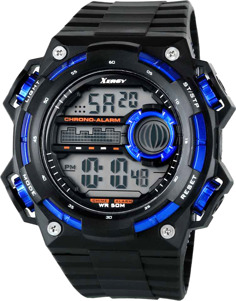 Xergy presents a perfect collection of "Xergy Luxury Sports"- Dual Time chronic alarm, date, week. A super luxury range of sports watches for the achiever in You !! This one is a masculine all-weather timepiece from the "Luxury Sports" collection. with precise time-keeping. It's macho style exemplifies sheer luxury and raw passion. This legendary timepiece is meant for the ambitious only. You are guaranteed superb precision with an effortless charismatic charm.