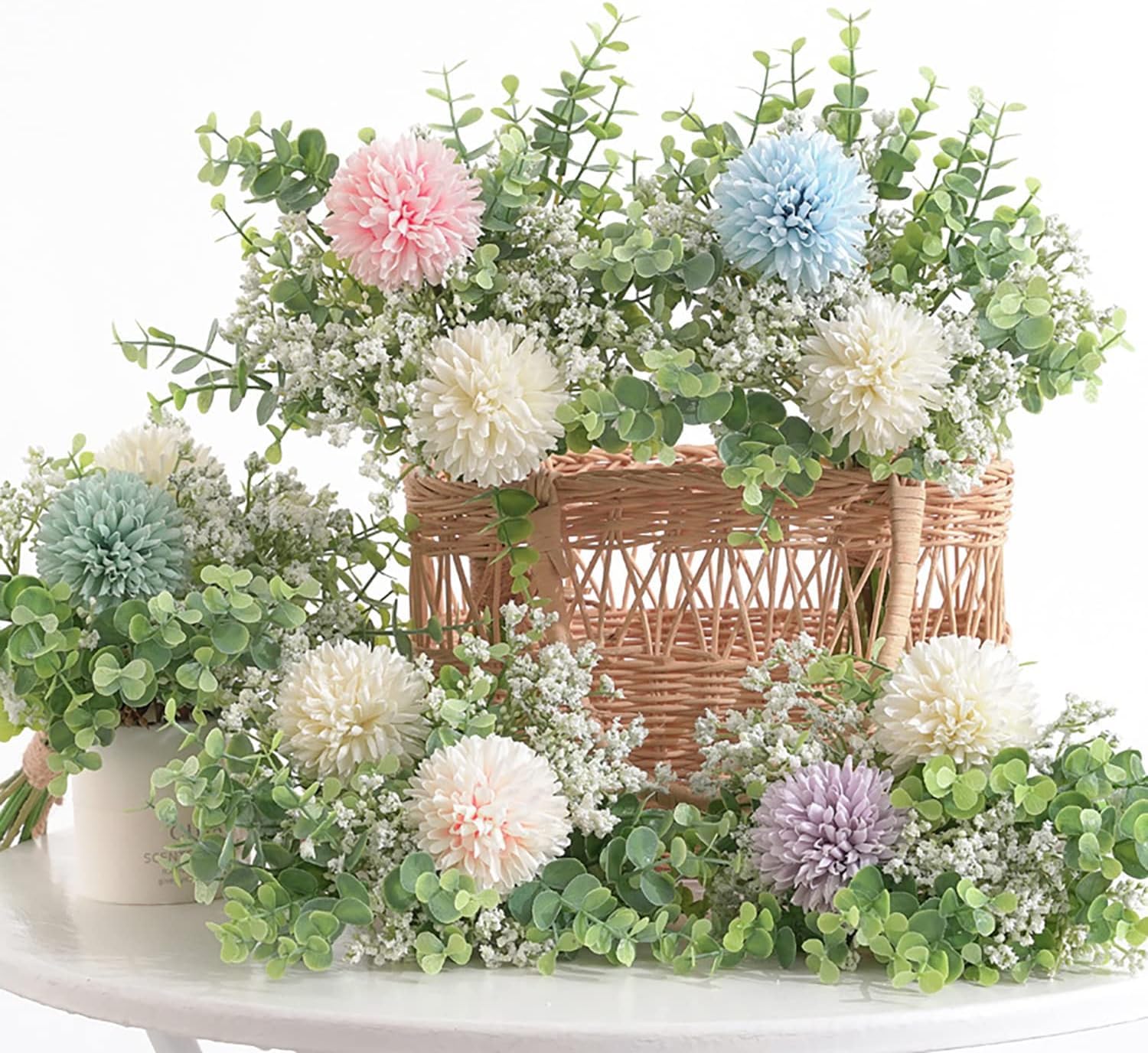 Material - Made of eco-friendly silk flowers, metal wire wrapped in plastic stems, plastic eucalyptus. Suitable for anywhere you want to place.