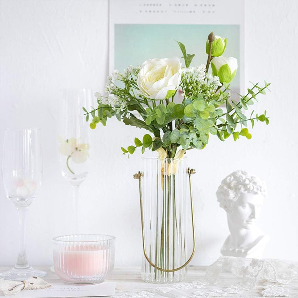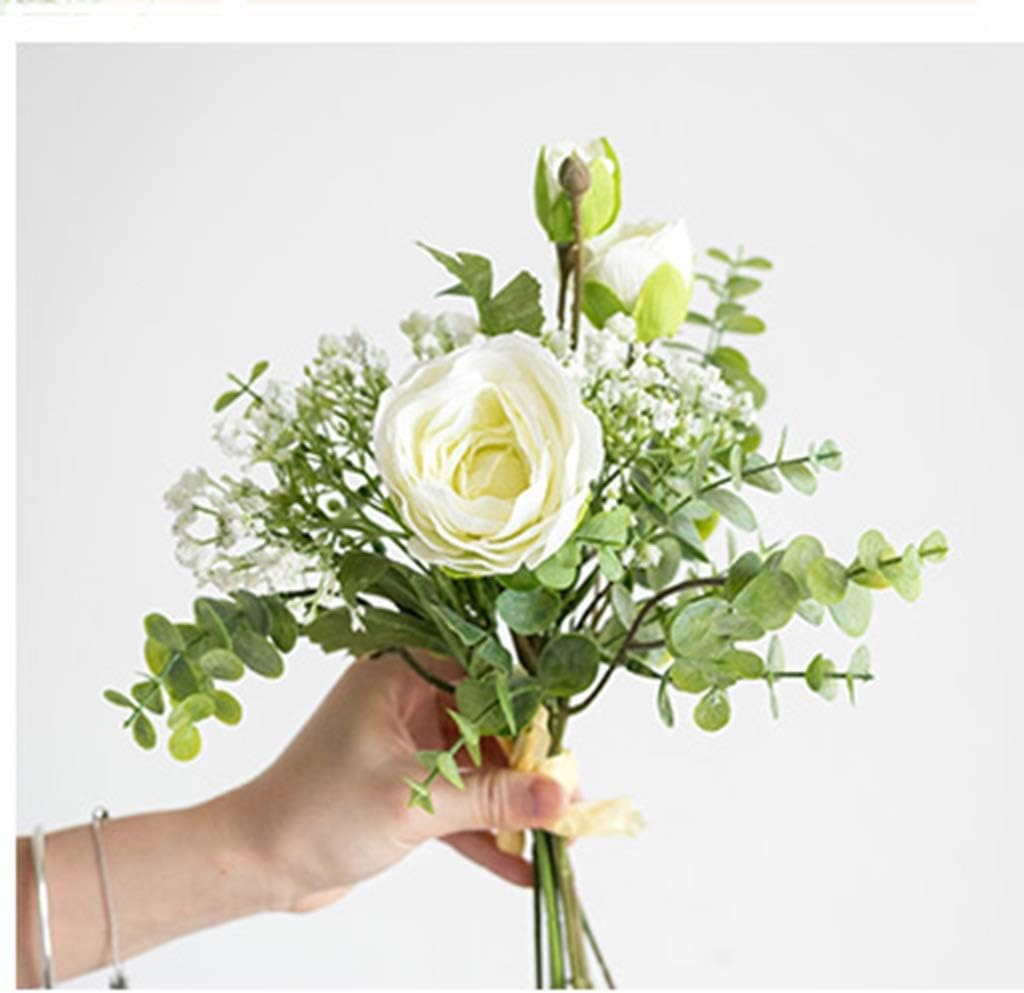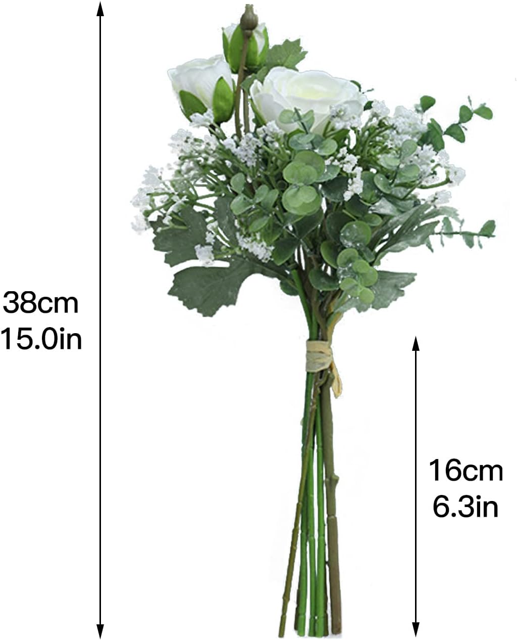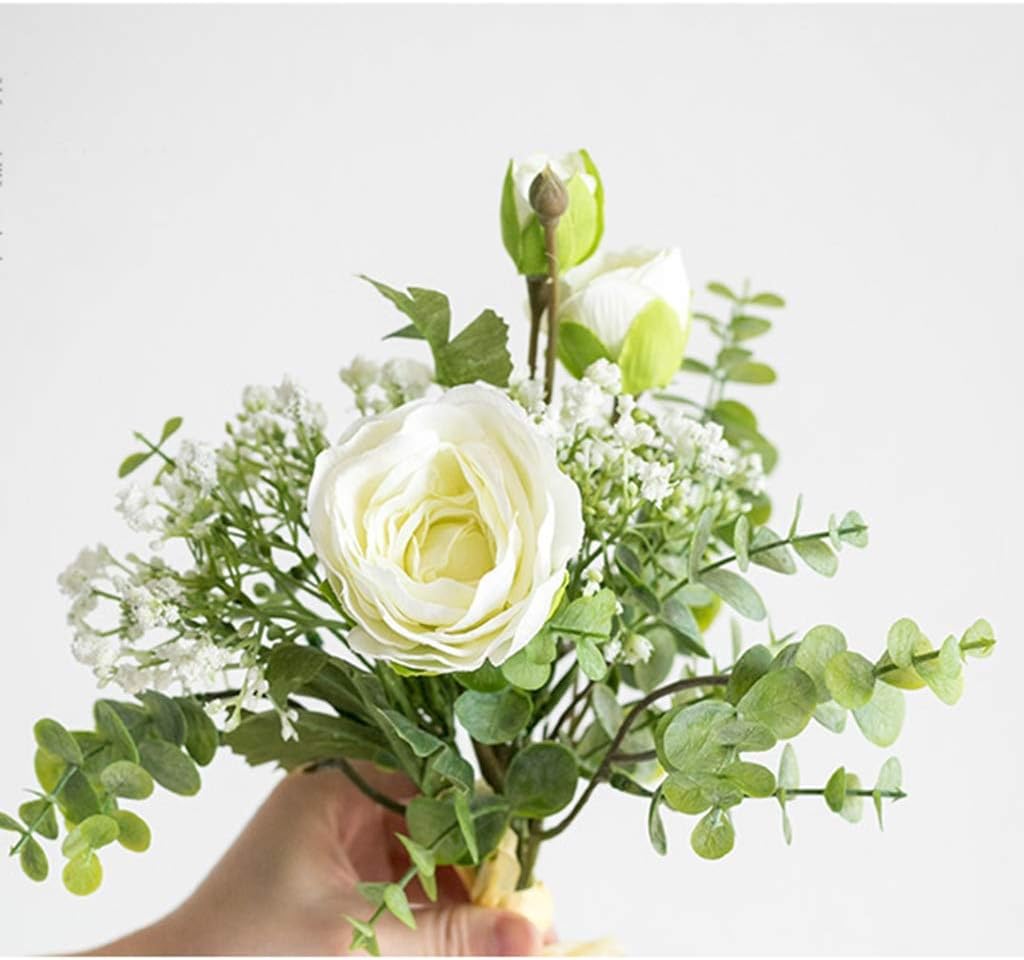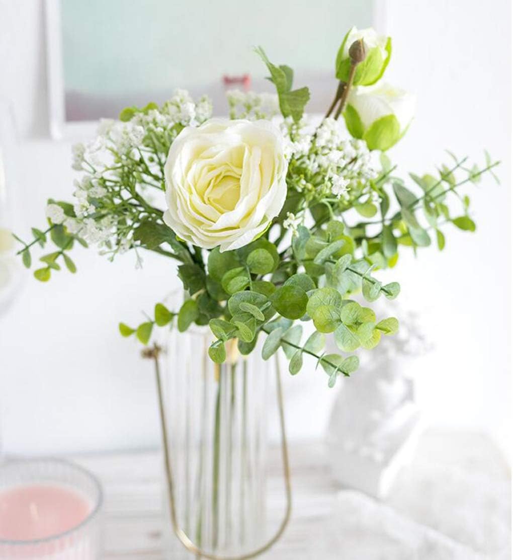 Artificial Flowers Arrangement- These fake flowers bouquet are composed of different flowers: 3 small eucalyptus + 3 small baby's breath + 1 Rose.