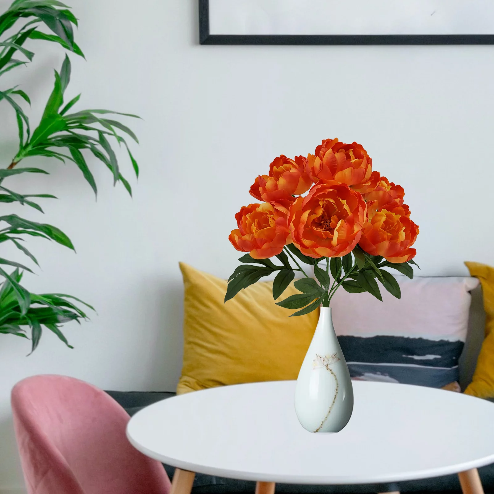 Realistic & Elegant Design: Features fully bloomed peony heads with rich layers of soft silk petals, natural-looking foliage, and detailed textures.