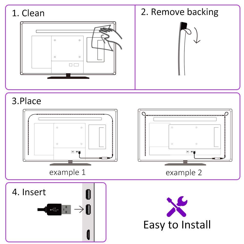 Flexible & Adjustable: The 1-meter strip is easy to bend and cut at designated points to perfectly fit the back of most TVs up to 40 inches.