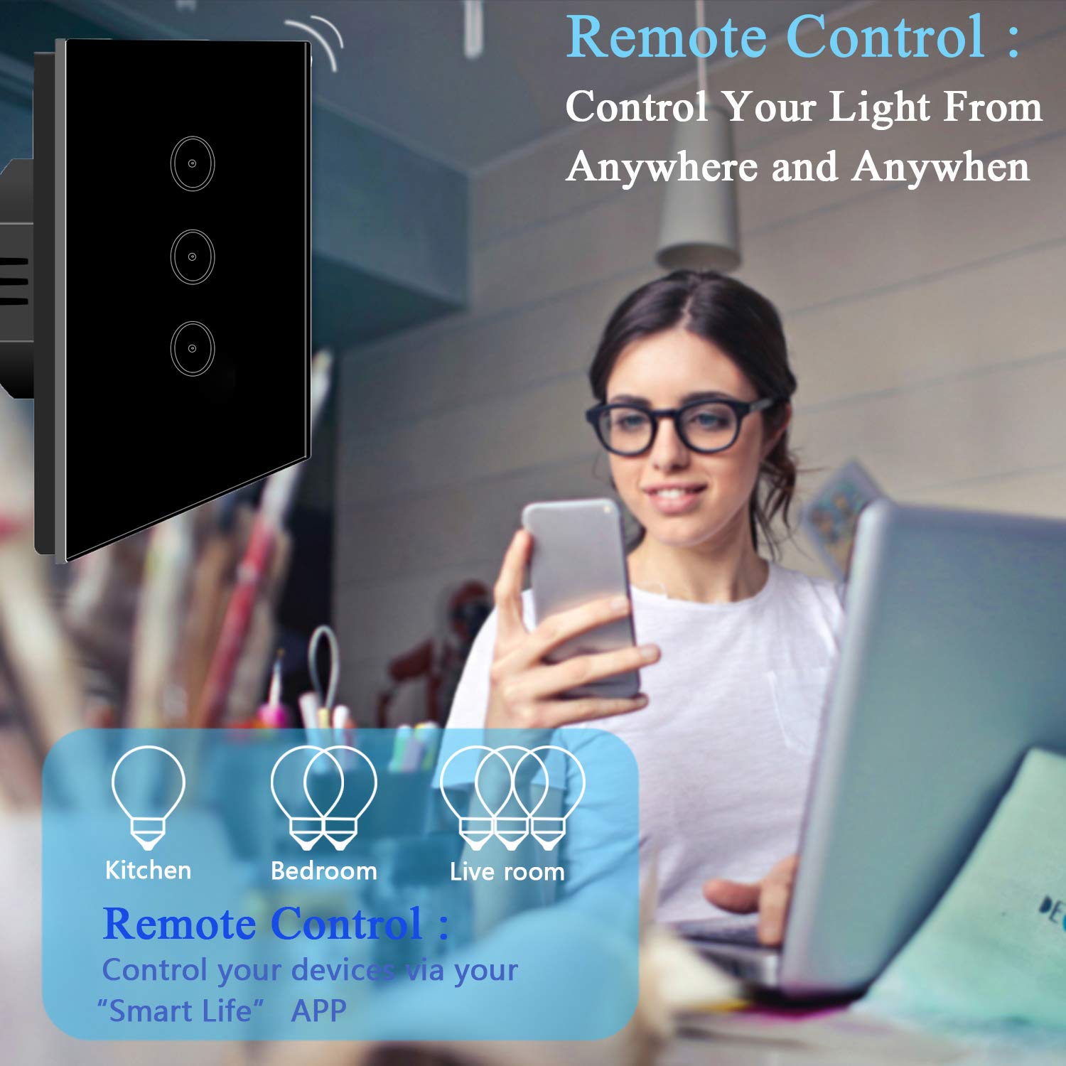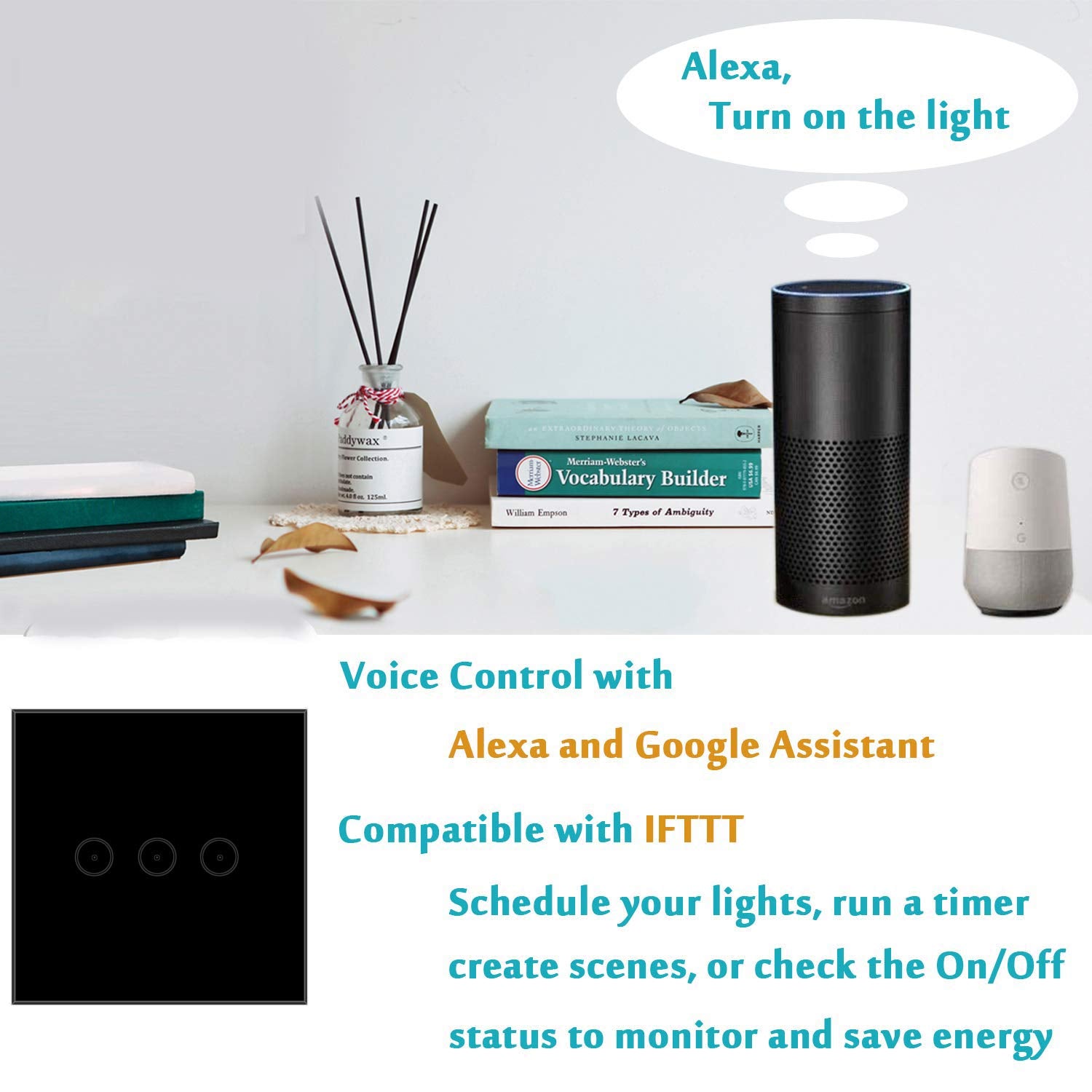Xergy 3 Gang Smart WiFi Light Switch Work with Alexa Google Assistant and IFTTT for Home Automation with Touch Panel in Tempered Glass Front