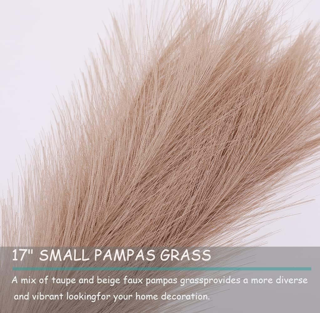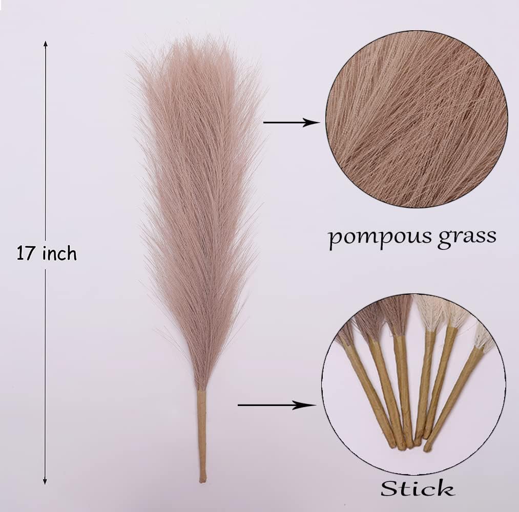 Fluffy Artificial Pampas Grass Flower - Brown (17 inch , Pack of 3, Flower Bunch)