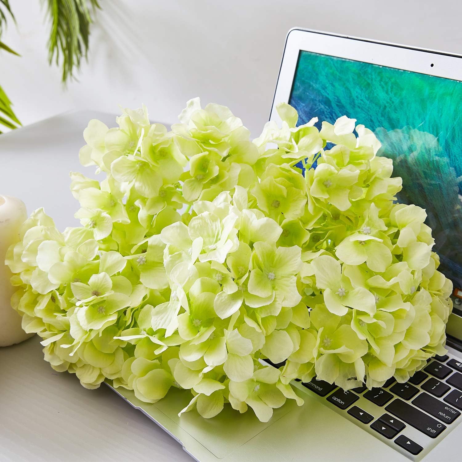 Silk Hydrangea Artificial Flowers - Green (13 inch, Pack of 3, Flower Bunch)