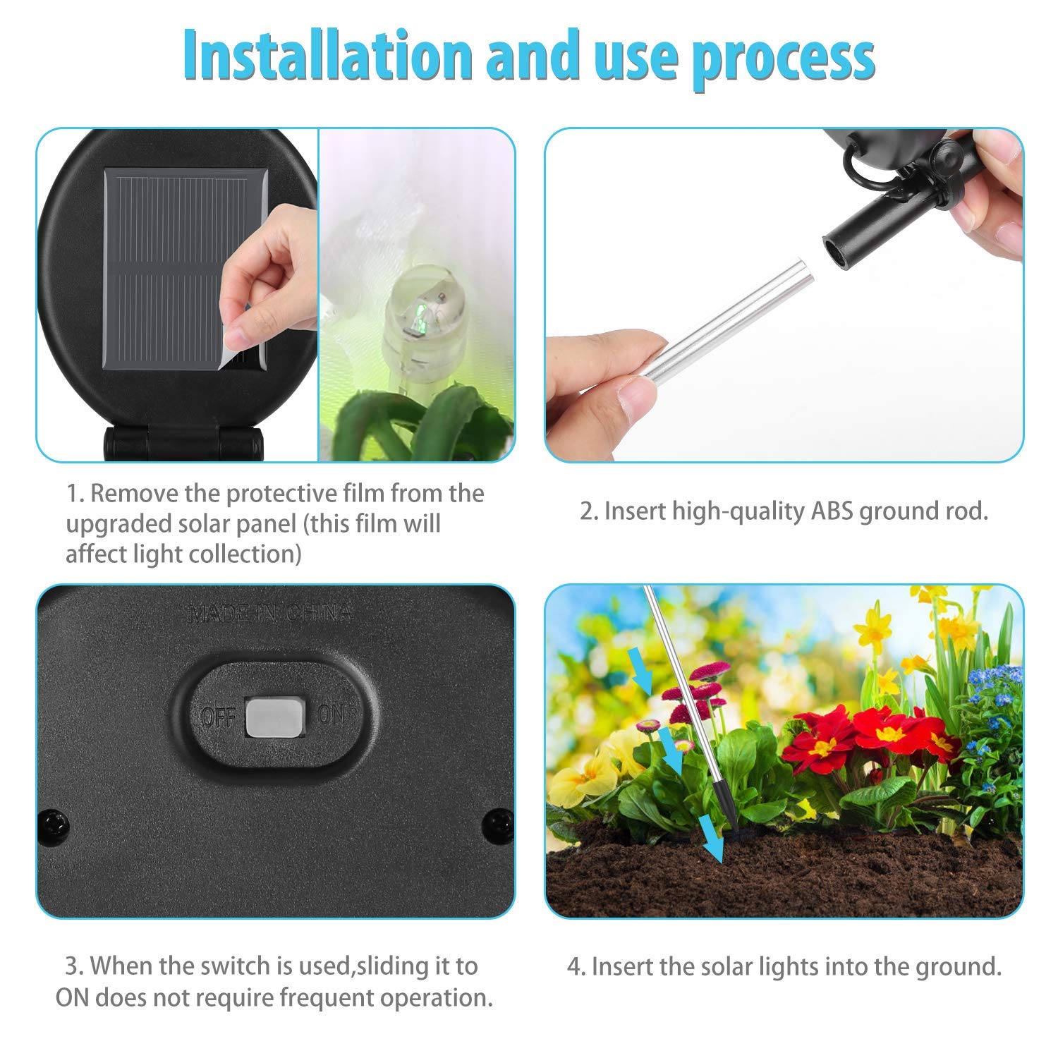 EASY INSTALLATION: Solar powered Lily flower uses a rechargeable AA Solar Battery, which is pre-installed. Attach the solar flower to the solar garden stake and simply push your solar flower stake into the ground. Once they are turned on and fully charged they will automatically illuminate once its dark.