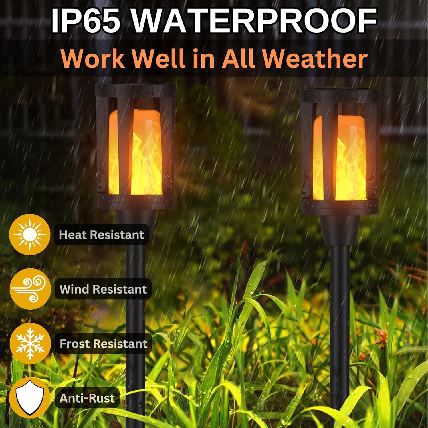 Realistic Flickering Flame Effect – Mimics the natural flicker of real flames, adding a cozy and elegant touch to your outdoor decor.