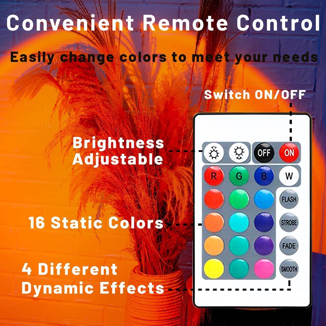 Remote Control- The Sunset Projection Lamp comes with remote control, you can remotely change effects and adjust the brightness. Very convenient and practical for you to take pictures and videos.