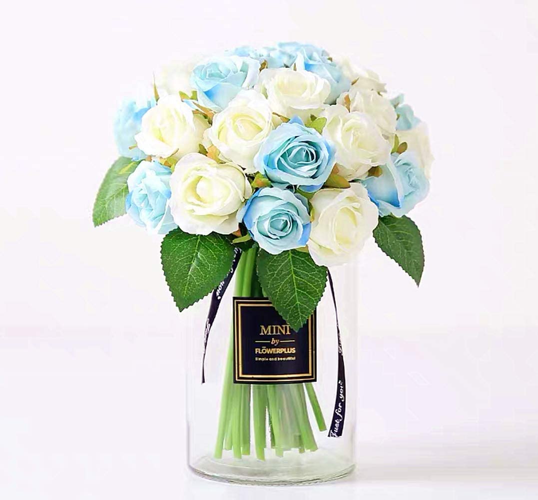 Artificial Faux Silk Rose Flower (Blue & White) (10.6 inch, Pack of 12 Flower Bunch)