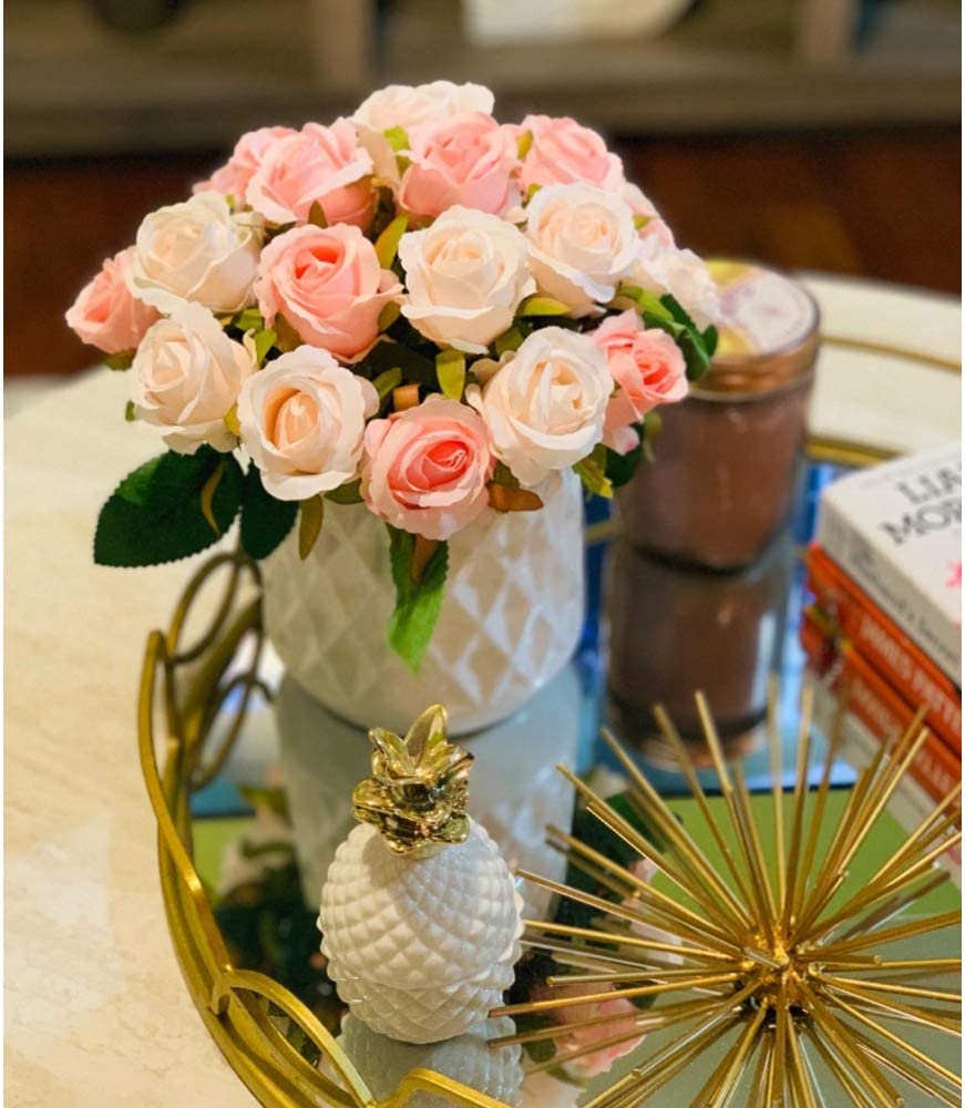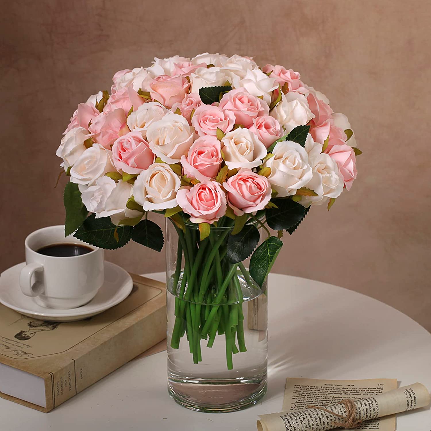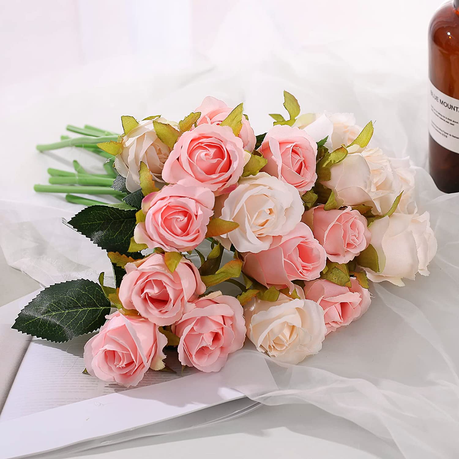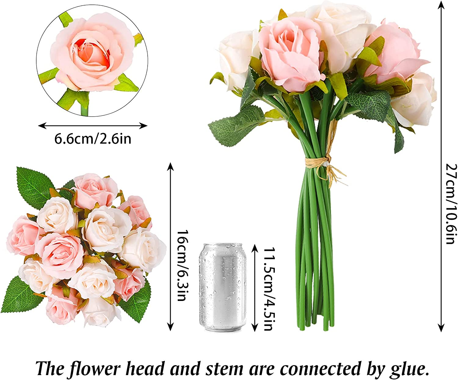 Artificial Faux Silk Rose Flower - Pink, Craem & White (10.6 inch, Pack of 12 Flower Bunch)
