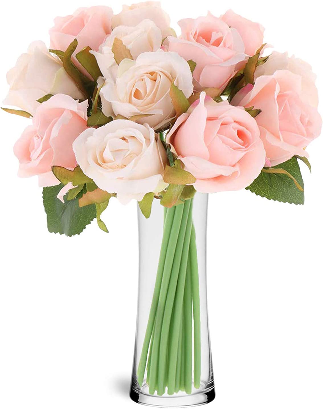 Specifications : 12 roses per package. The length of the whole bunch is about 10.6 inch. Notice: Our fake flower is without the vase.