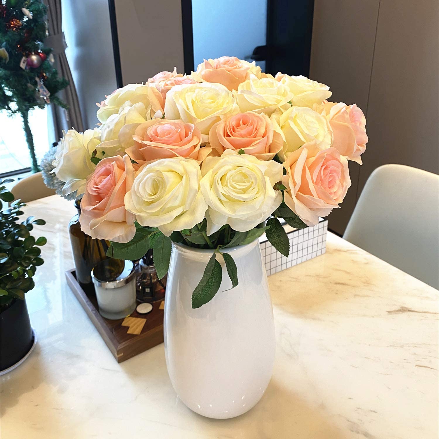 Easy to DIY - Single stem roses are perfect for DIY flower arrangements, table vases, DIY flower bouquets, bridal wedding bouquets, accessories, centerpieces, lapel boutonnieres, gift packages, etc. feel free to match them with babies breath. calla lilies. tulips. greenery branches, etc. realistic looking and no-fading color can help you achieve the perfect decorative effect.