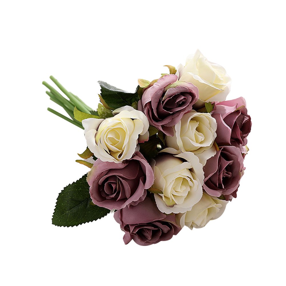 Artificial Faux Silk Rose Flower - Purple & White (10 inch , Pack of 12 Flower Bunch)