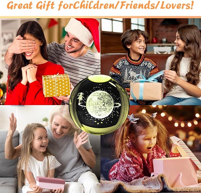 Made by 3D Engraving Process: The night light lamp is made of high-quality K9 crystal materials, and the interior images are carved by advanced 3D laser engraving technology, it's vivid and clear, great as a unique gift for girls or boys. When you rotate the crystal ball, the built-in colorful LED light will project a stunning luminous pattern on the ceiling.