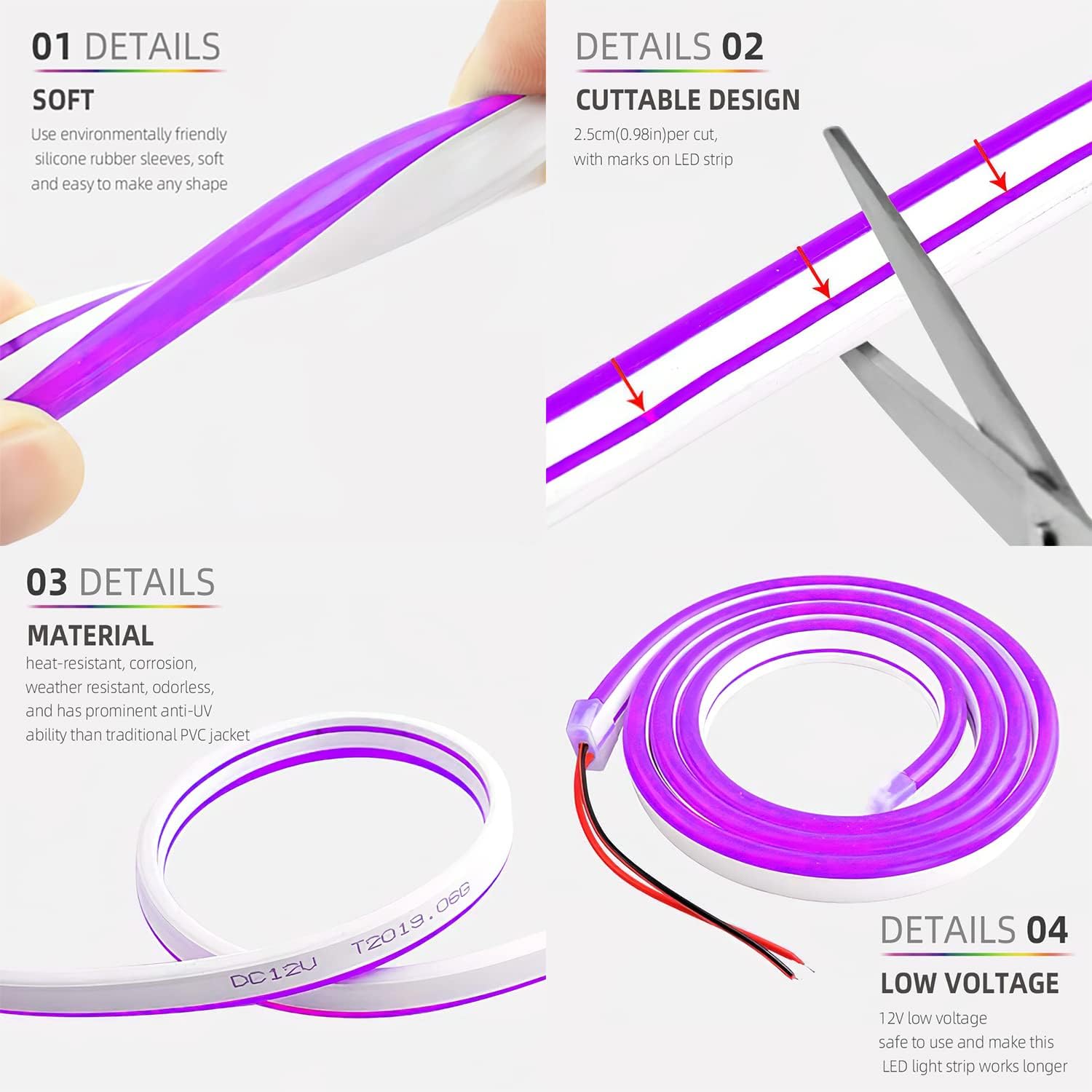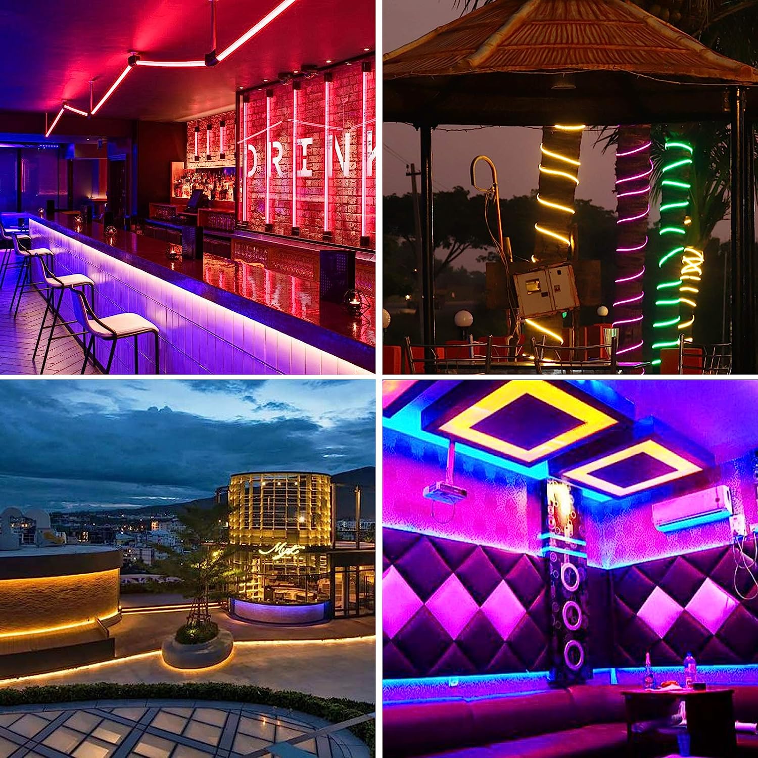 Plug and play, easy and convenient- The neon light strip includes 600 super bright led lights.12V low voltage. Upgraded LED and Side-Brightness Design Make neon-led strip lights Shine Brighter than others, 120 Degrees Projection Range offers Large Illumination Coverage.