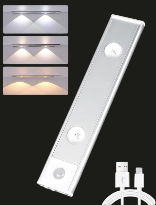 Working Mode: 3 Working modes are adjustable: Under counter closet light strip has three-tone dimming + stepless brightness adjustment + multiple sensing modes, powerful function.