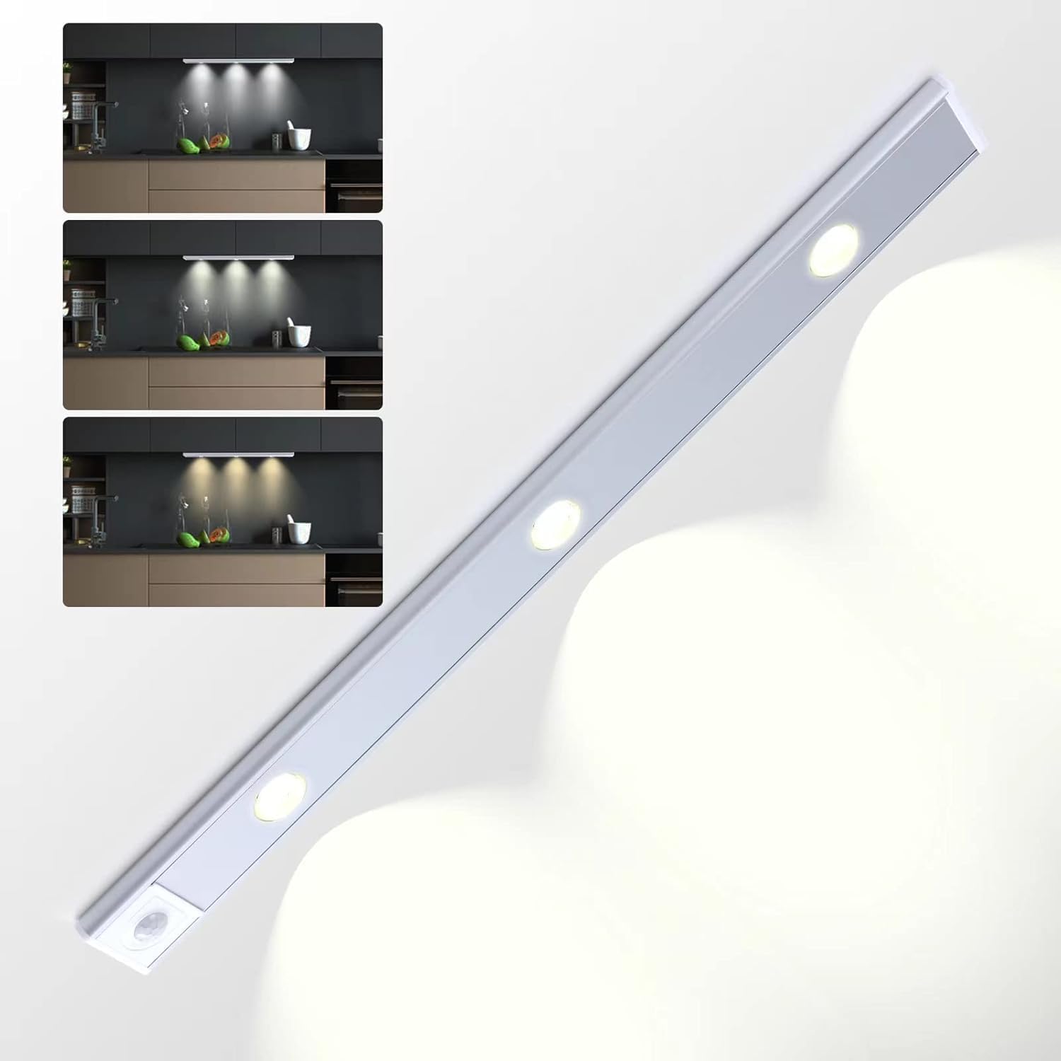 Working Mode: 3 Working modes are adjustable: Under counter closet light strip has three-tone dimming + stepless brightness adjustment + multiple sensing modes, powerful function.