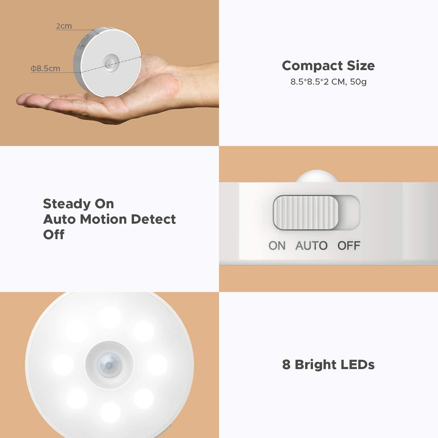 AUTOMATIC SENSING : With passive infrared technology, it can be detected by the motion of a human in the dark. Easily Motion Sensor Closet Lights is auto-on within 10 feet, auto-off after 15-18 seconds of no motion detected helps prolong battery life.