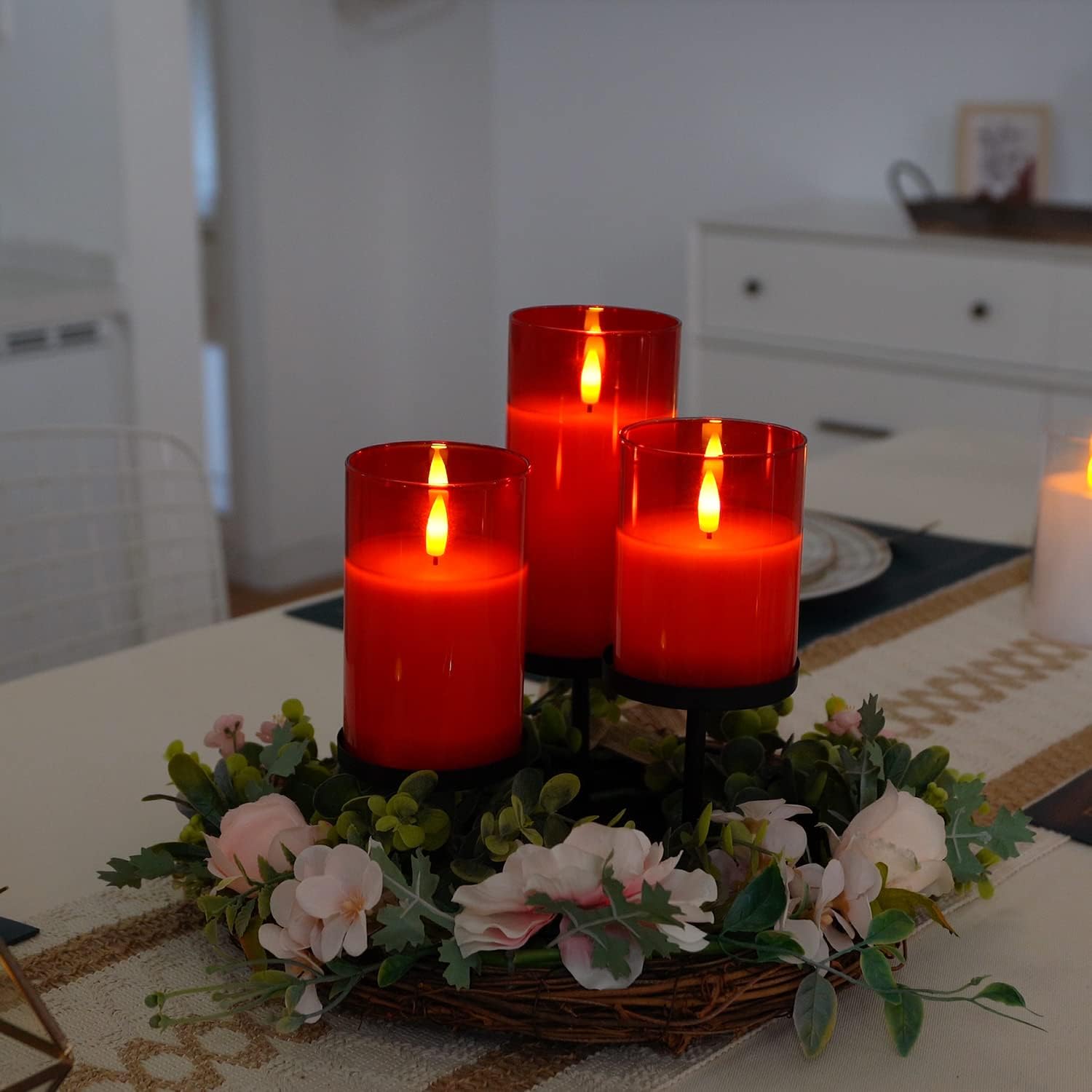 Set Includes: 3 LED candles in varying heights ( 4", 5", and 6"inches ) for a beautiful tiered effect.